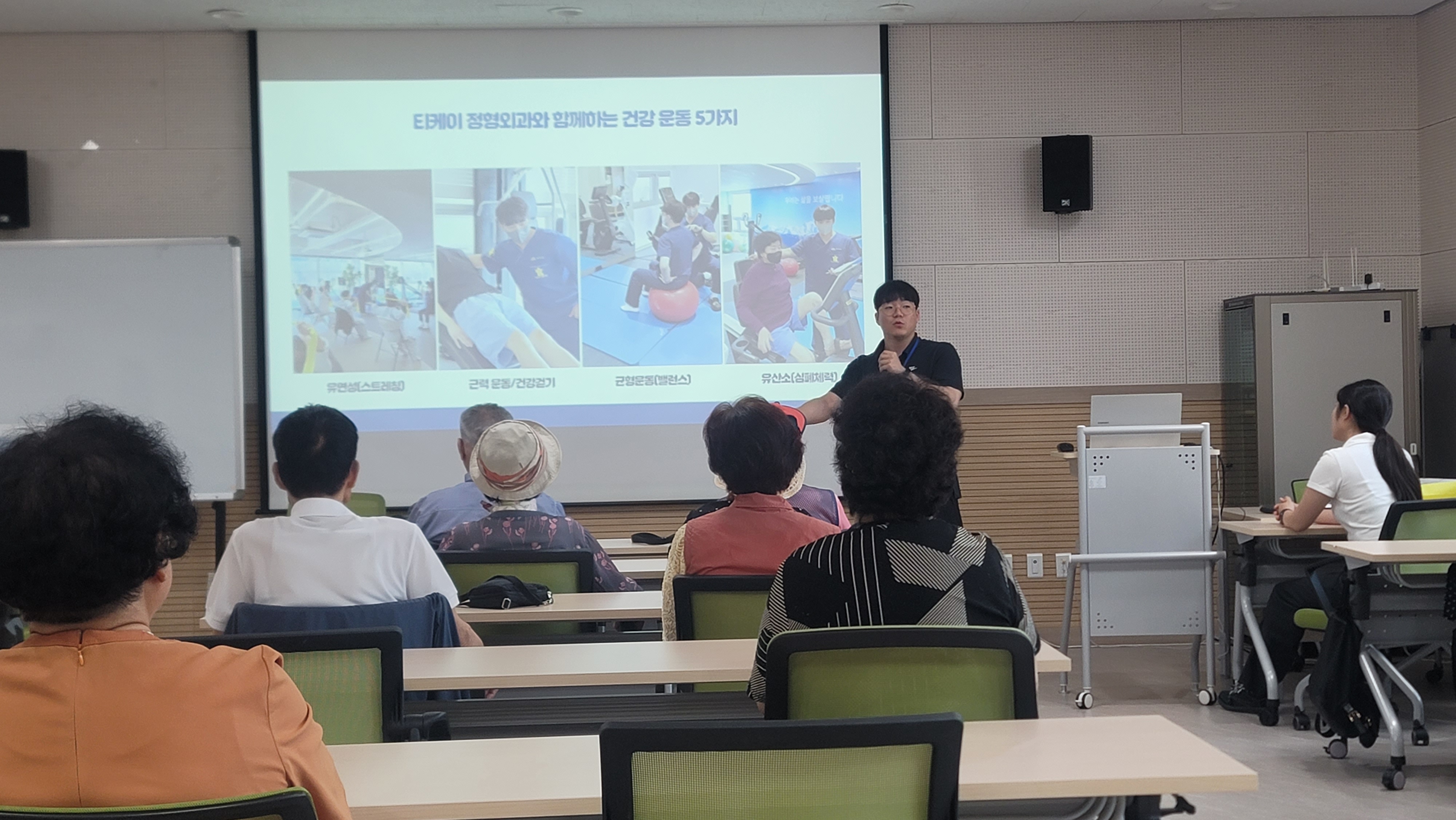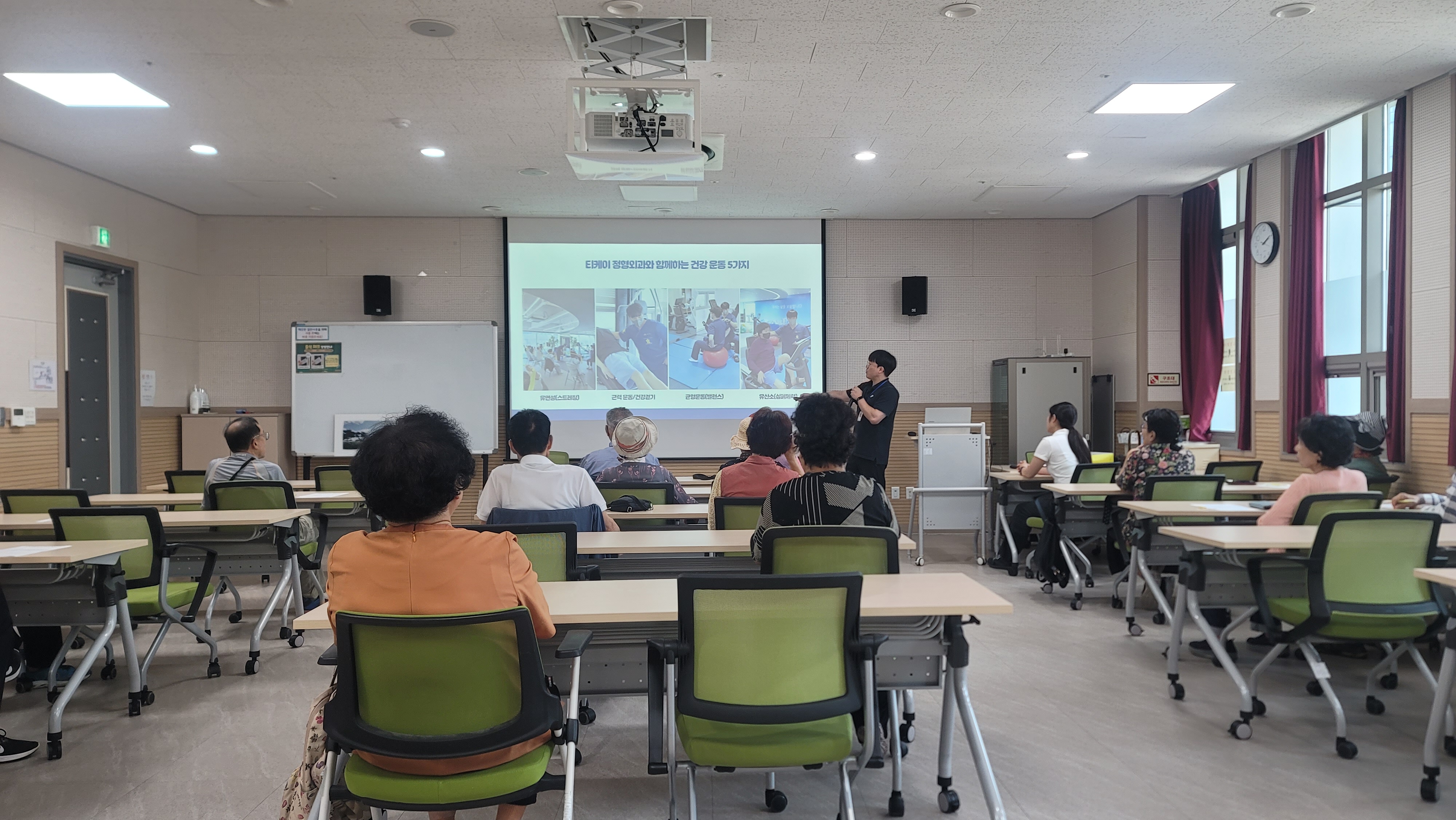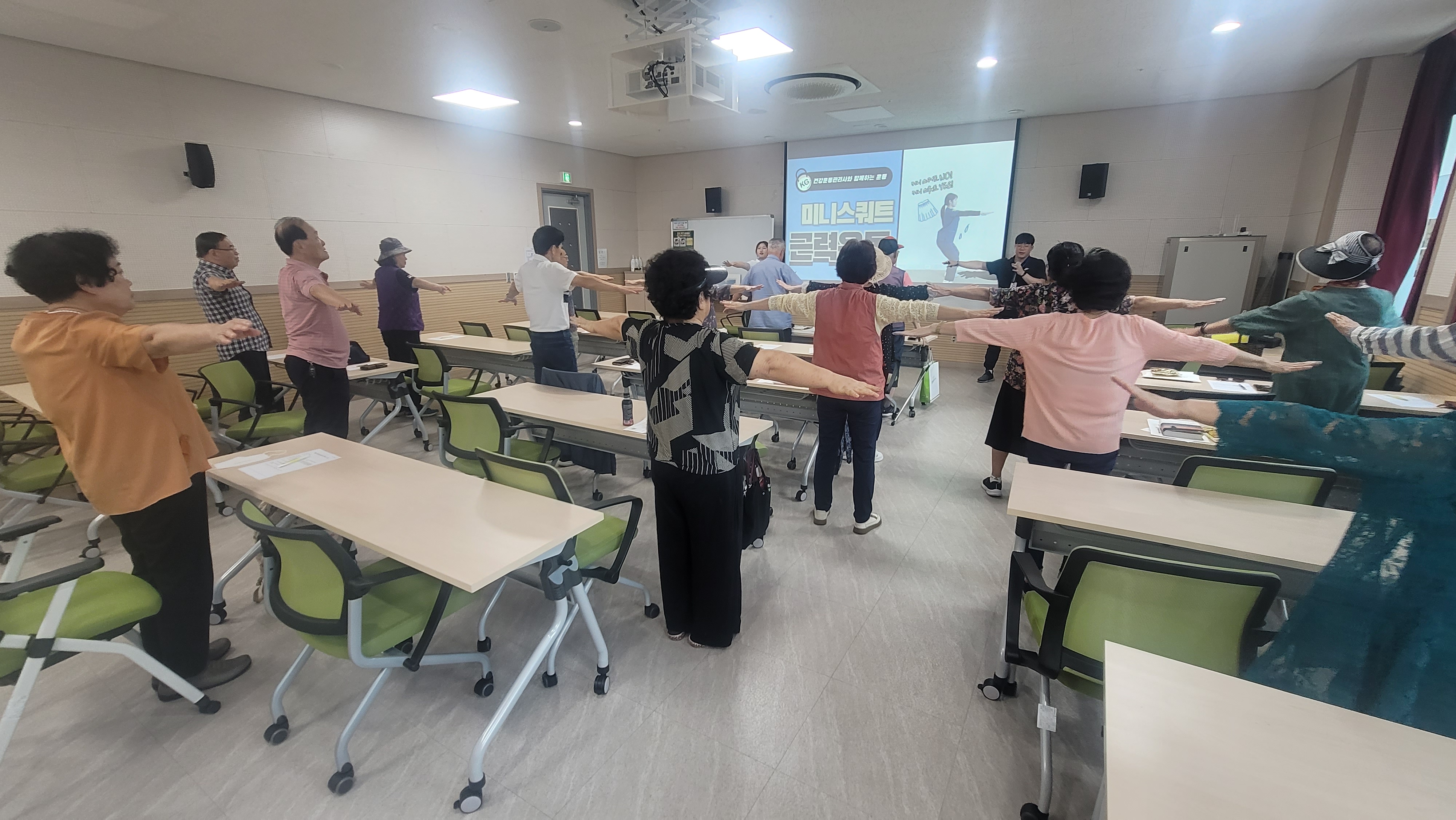 약 30여분의 지역주민들에게 강의 전 일상에서 운동하는 5가지를 배우기도 하였습니다.