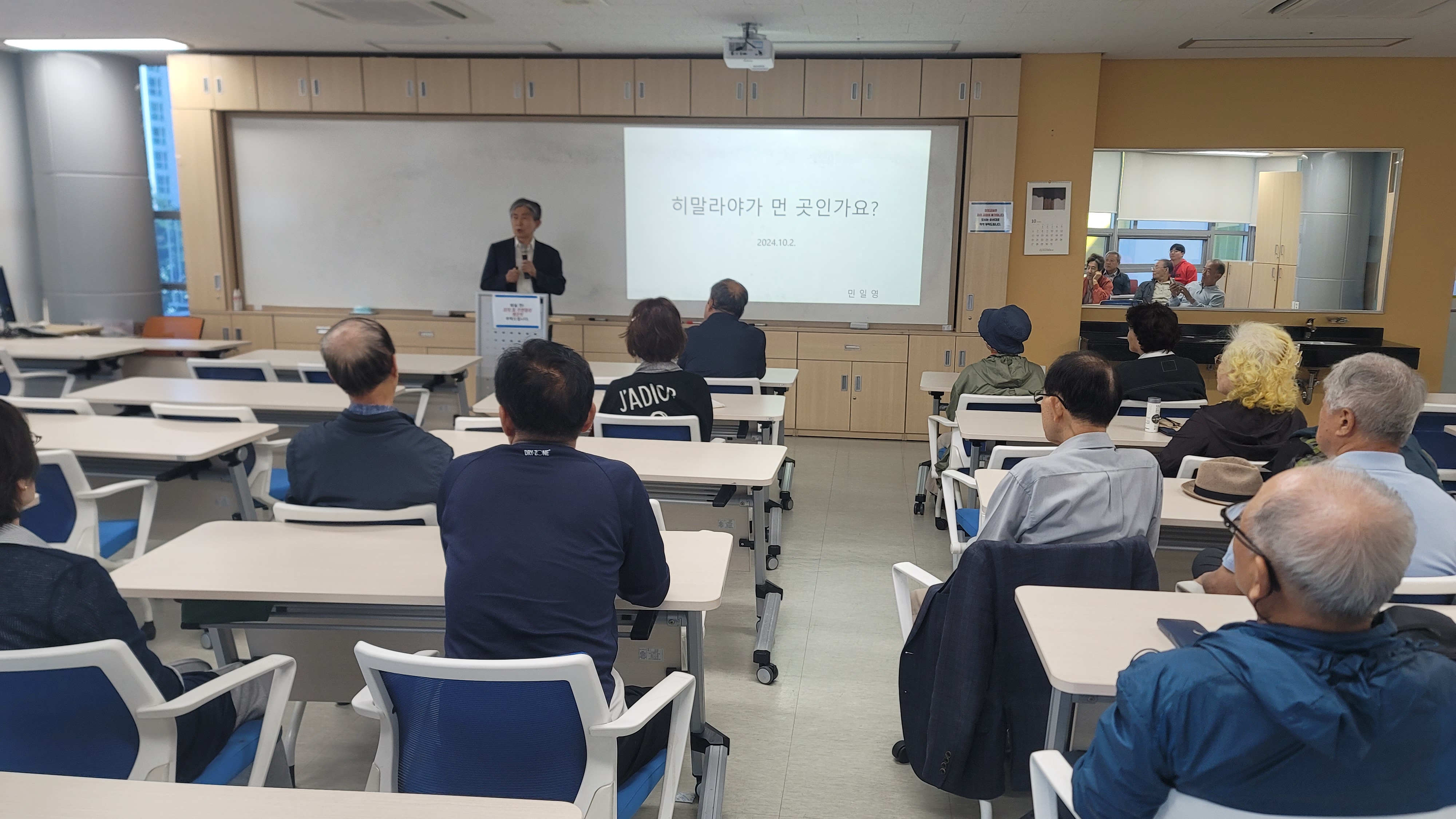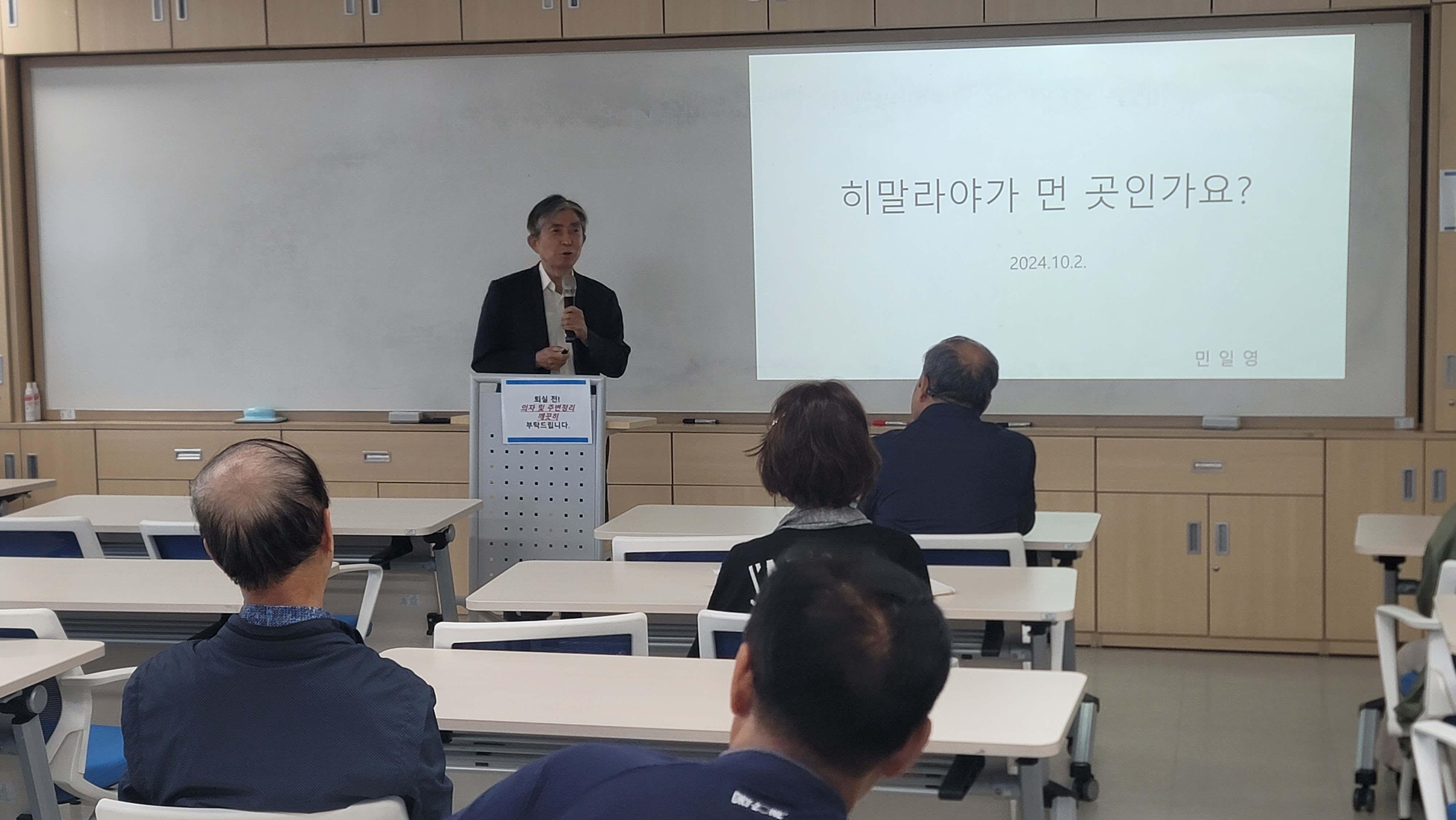 민일영 (전)대법관님께서 "히말라야가 먼 곳인가요?"라는 주제로 판교노인복지관 주민들을 위해 강의하셨습니다.
