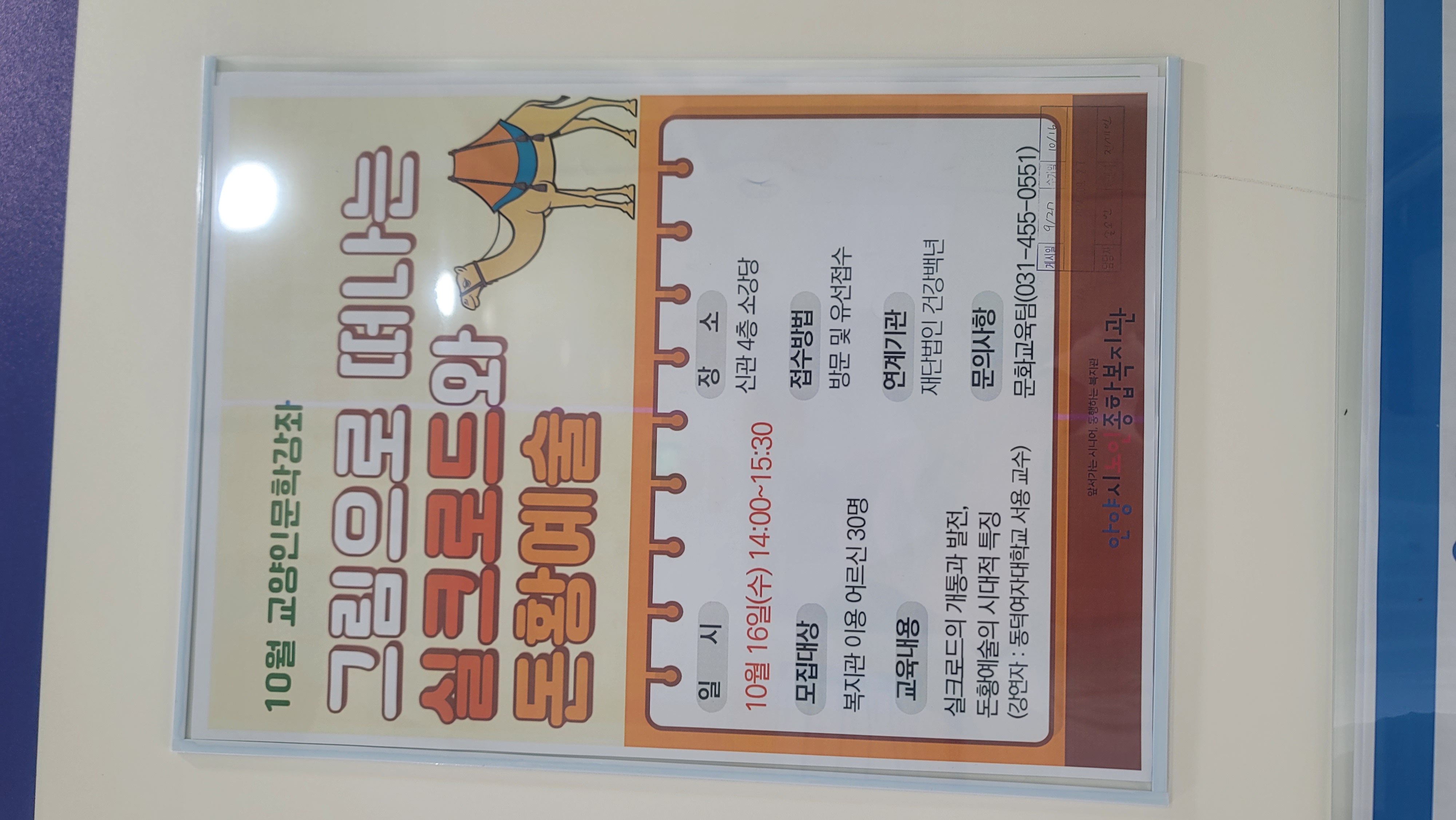 서용 교수님(동덕여대)께서 안양노인복지관 주민들을 위해 "그림으로 떠나는 실크로드와 돈황예술"이라는 주제로 강의하셨습니다.