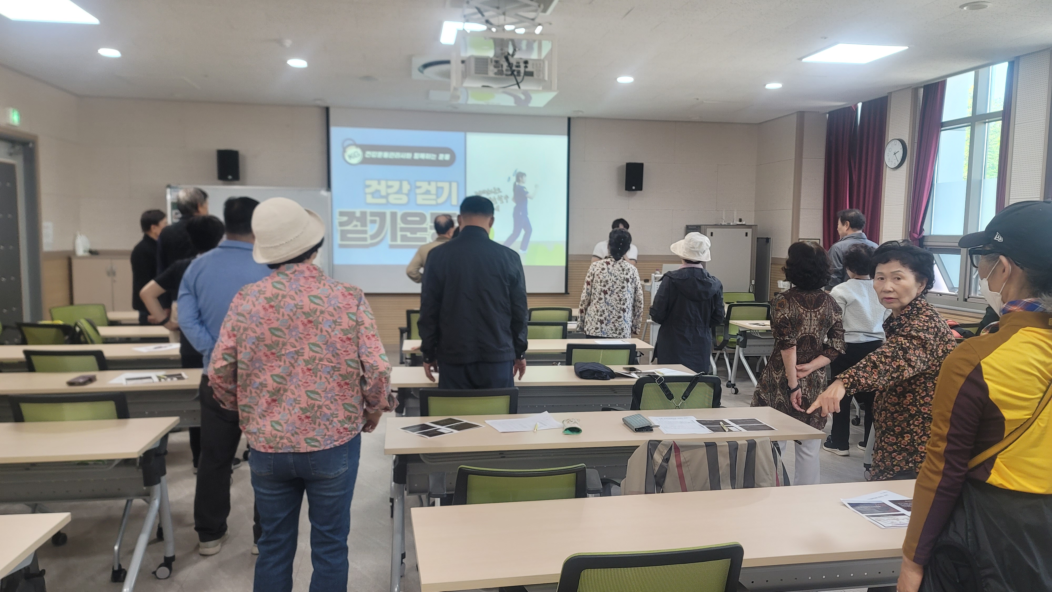 약 20여분의 지역주민들에게 강의 전 일상에서 운동하는 5가지를 가르쳐 드리기도 하였습니다.