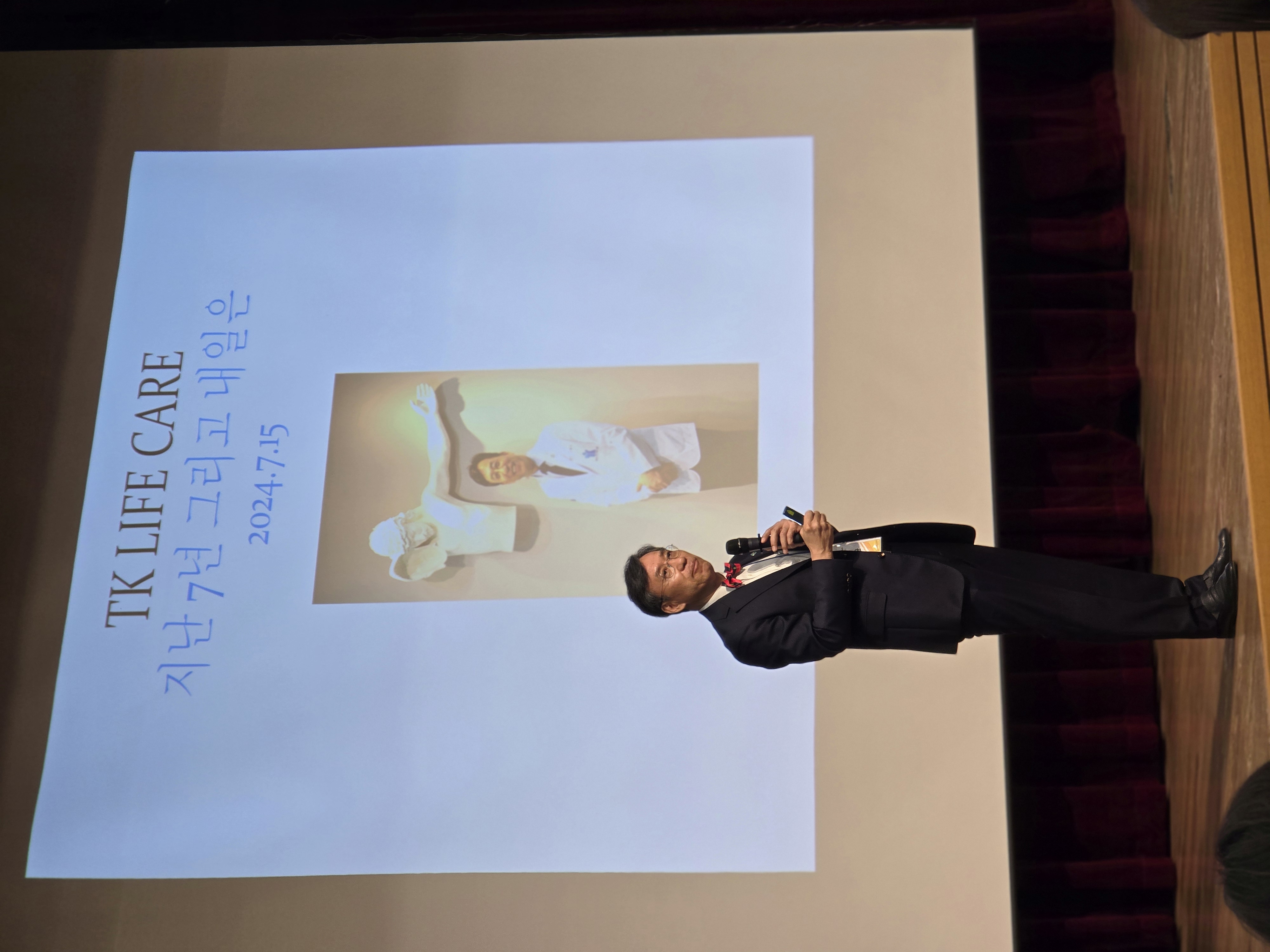 Session 2 시간에는 [지금 TK에서는 Today TK Life Care]라는 제목으로 현재 TK정형외과에서 이뤄지고 있는 치료와 관리방법은 어떤 것들이 있는지를 설명하기 위해 1. 무릎관리(Knee Care)는 김우현(티케이정형외과)과장님이 2. 통증관리(Rehab and Pain Care)는 김가혜(티케이정형외과)과장님이 3. 삶의질관리(Life Care)는 박혜미(티케이정형외과)과장님이 4.완화의료는 김철민(서울성모병원)교수님이 5. 노년의학은 김태균(티케이정형외과) 교수님께서 강의하셨습니다.